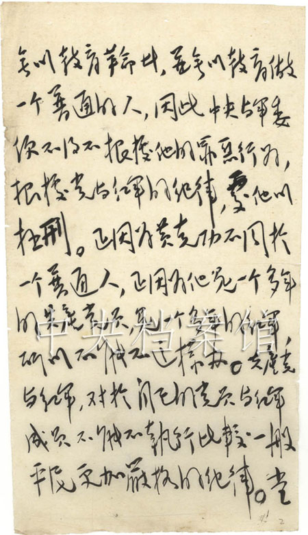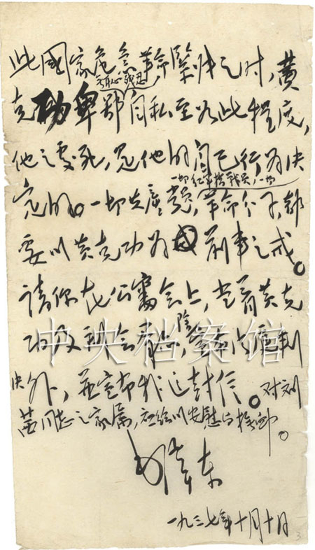 黄克功过去斗争是光荣的。今天处以极刑,我及党中央的同志是为之惋惜的。但他犯了不容赦免的大罪,以一个共产党员红军干部而有如此卑鄙的、残忍的,失掉党的立场的、失掉革命立场的、失掉人的立场的行为,如为赦免,便无以教育一个普通人。因此,中央与军委便不得不根据他的罪恶行为,根据党和红军的纪律,处他以极刑。正因为黄克功不同于一个普通人,正因为他是一个多年的共产党员,是一个多年的红军,所以,不能不这样办。共产党与红军,对于自己的党员和红军成员,不能不执行比较一般平民更加严厉的纪律。如此国家危急、革命紧张之时,黄克功卑鄙无耻残忍自私至如此程度,他之处死,是他自己的行为决定的。一切共产党员,一切红军指导员,一切革命分子都要以黄克功为前车之鉴。