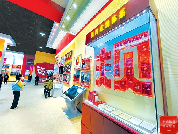 下图为展出的中国共产党党内法规选编等资料。中央纪委国家监委网站 王雅婧 摄